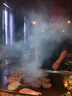I cannot pretend that we could understand our chef very well. He spoke with a thick accent. But there was no doubt that the man had skill when it came to handling his knives. However, the proof is in the pudding. The man can whirl a knife around, but can he cook? Not all Hibachi are equal. Some tend to overcook their food, but who cares when you have been dazzled by mad food prep skills combined with small pyrotechnics show? Imagine my surprise then when I popped the first morsel of filet mignon into my mouth and recognized it as filet mignon! Not shoe leather, or beef jerky, but actual tastey, juicy and tender steak. It was heaven in my mouth. The lobster that followed was just as tender and full of flavor. Thank God for "boxing". To leave the food on my plate would have been a sin! Instead, I boxed it up and brought it home to enjoy later. And man, am I looking forward to that.